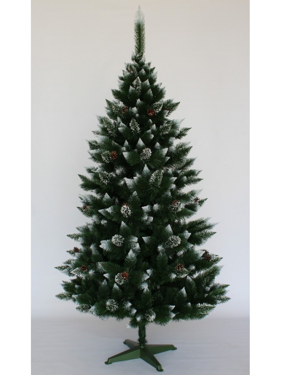 Ель искусственная Сосна с белыми кончиками и шишками 220 см