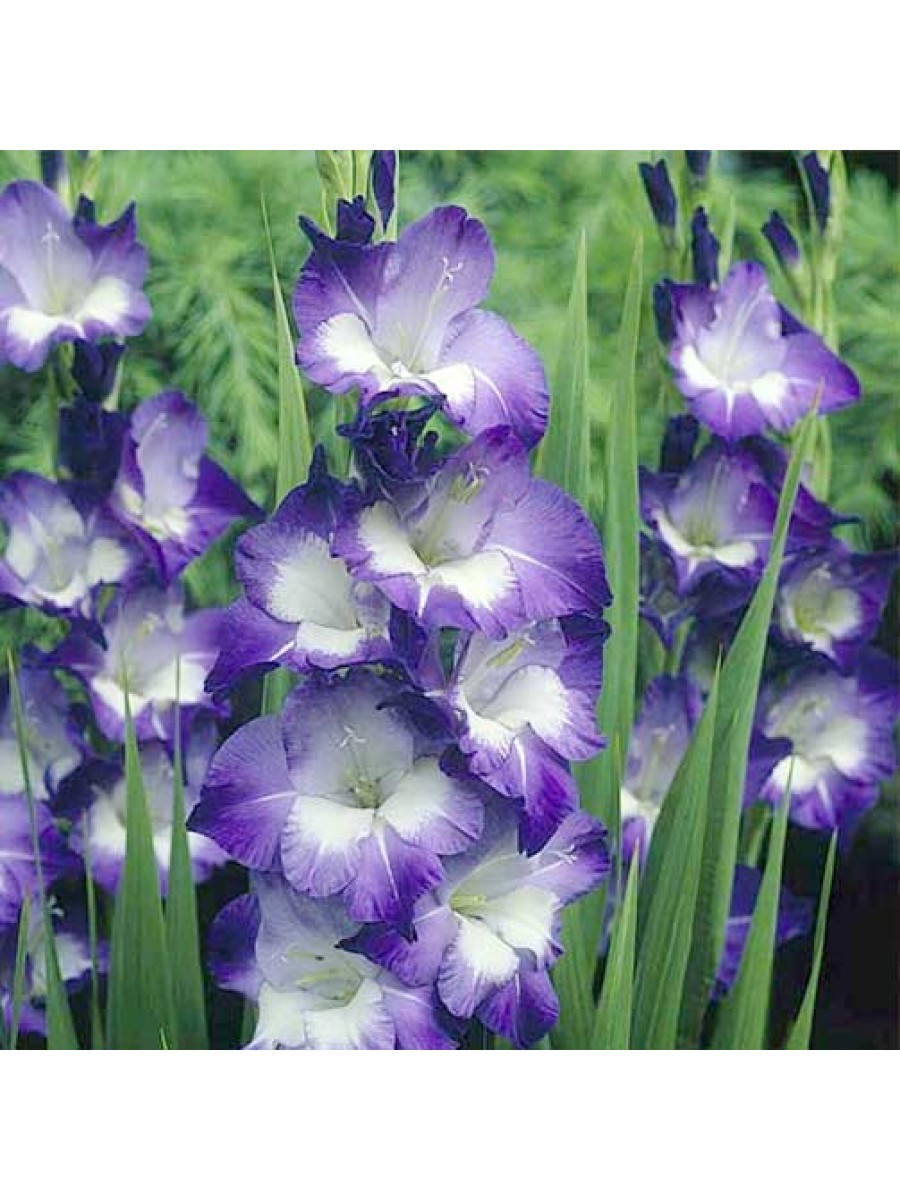 Крупные, но нежные воронковидные цветки этого растения привлекают белоснежной серцевинкой в окружении фиолетовых волнистых лепестков. На одном цветоносе одновременно может быть 9-12 бутонов, достигающих в диаметре 10-15 см. Стройные стебли королевского сорта высотой 80-100 см выглядят устойчивыми. Гладиолус является не только популярным растением для клумбы, он широко используется в создании букетов. Купите и посадите луковицы гладиолуса крупноцветкового Кингс Линн, и уже летом у вас появится возможность убедиться в его величественной красоте. Особенности посадки и ухода Посадку производят, когда земля прогреется до 10-15 °C. Место выбирают солнечное, безветренное. Лучшей почвой для гладиолуса является легкая песчаная, но главное условие – хороший дренаж. Поливать нужно не часто, но не менее 10 л под один кустик. Рекомендуется мульчировать грунт вокруг, чтобы сохранить влагу.