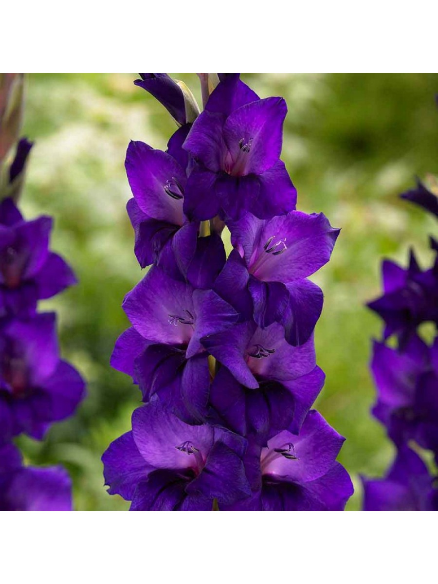 Гладиолус крупноцветковый Момбаса – это ирисоподобный, красивый сорт. Неприхотливое растение с обильным цветением. Высота 100-110 см. Цветок треугольно-воронковидной формы, диаметром 10-15 см, с сильно отогнутыми лепестками. Фиолетовый окрас, имеется легкий аромат. Начинает раскрывать бутоны рано, с июля. Размножение – клубнелуковицы, необходимо выкапывать с начала и до середины осени. Хранить в бумажных пакетах или ящиках, при температуре +12-15⁰C.