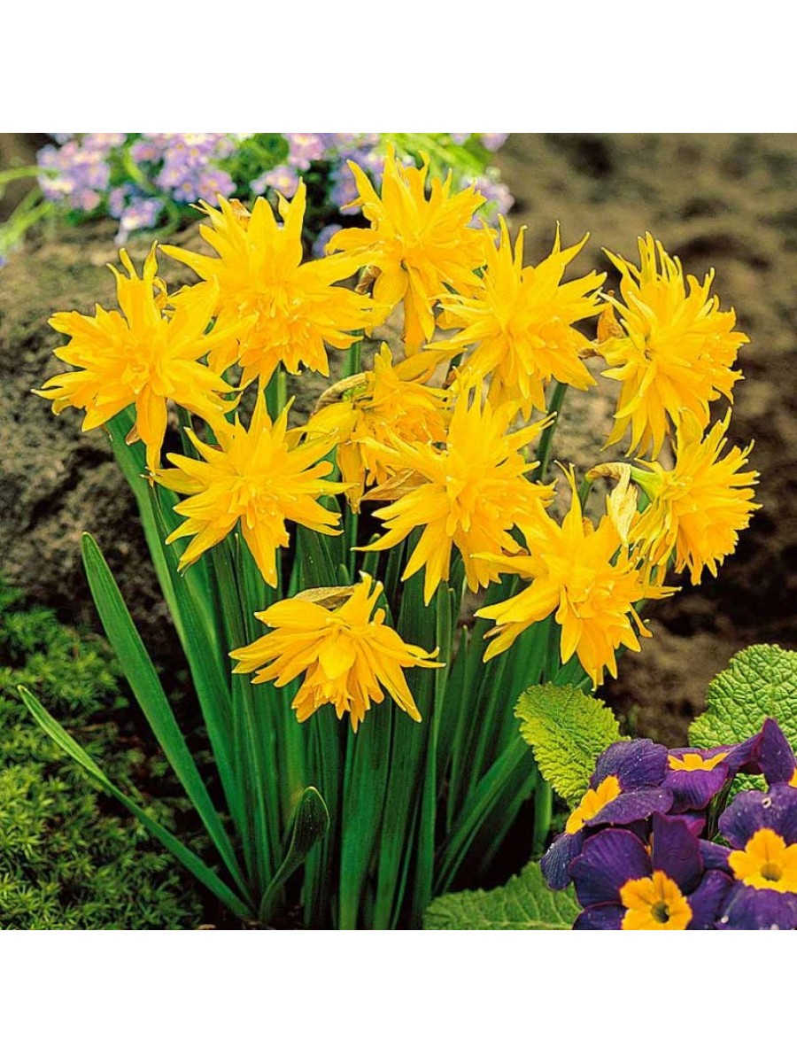 Яркие куртинки этого невысокого махрового нарцисса будут очень уместны на альпийской горке, на переднем крае цветника, возле водоема. Они смотрятся как эндемики, хотя это сортовой нарцисс, правда выведенный еще в девятнадцатом веке. Такие сорта всегда востребованы в наших садах, так как приносят в него очарование диких природных форм и придают ему нестандартность.