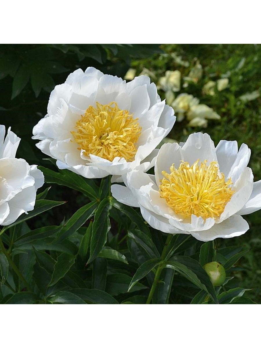 Японский сорт пионов Jan van Leeuwen выглядит женственно и изящно. Белоснежные лепестки цветка, отлично сочетаются с яично-желтой сердцевиной. Сам цветок чашевидный и может вырасти до 15 см в диаметре. Несмотря на то, что куст пионов достаточно большой, он выглядит аккуратно и пышно и станет отличным дополнением для вашего сада или цветника.